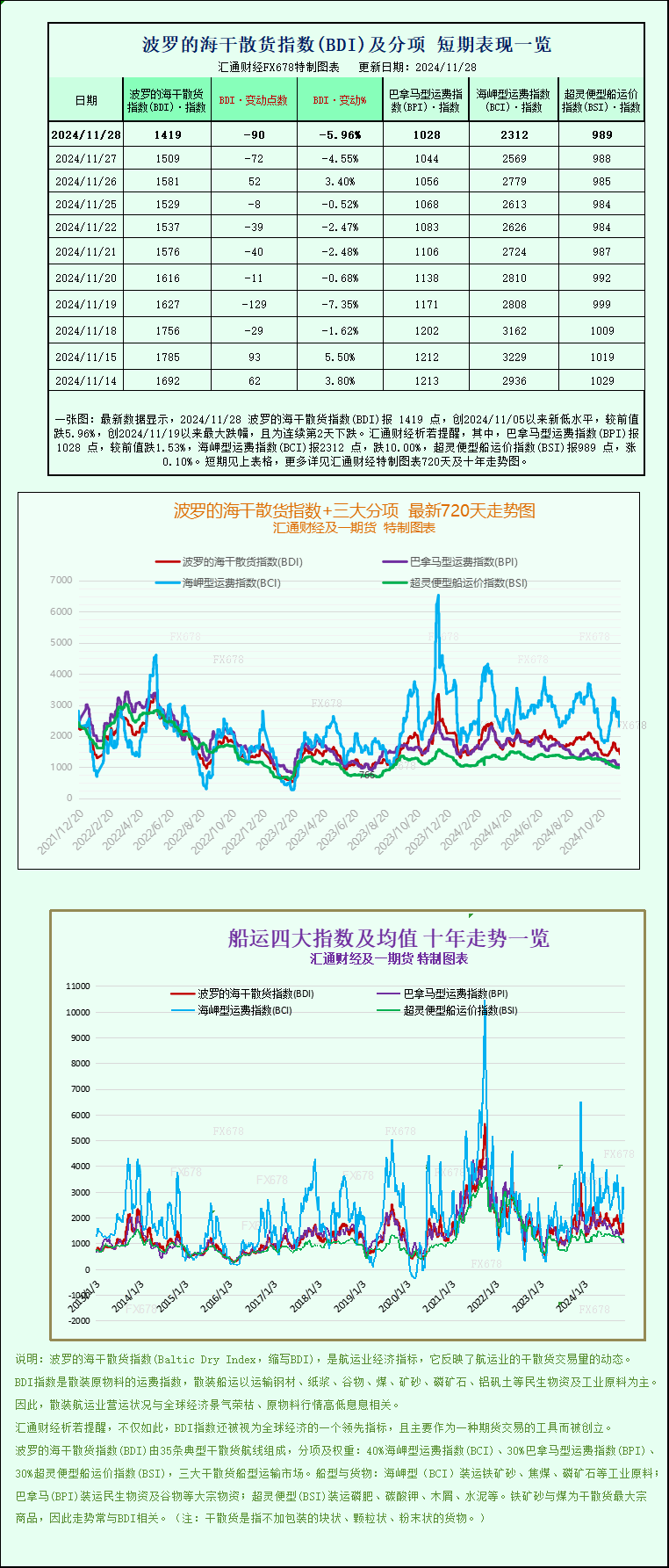 标题:一张图:波罗的海指数因大型船舶运价下滑跌至三周多以来的最低点
