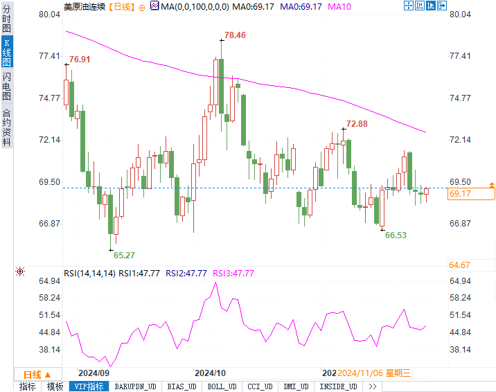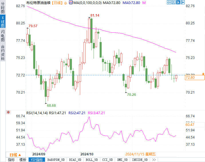 布伦特原油交投于72.77美元/桶,日内微涨0.62%;WTI原油上涨0.63%,报69.15美元/桶。尽管油价略有回升,但市场情绪依然偏谨慎。OPEC+推迟12月产量政策讨论至12月5日的决定,反映出成员国对需求疲软环境下调整政策的敏感性。
