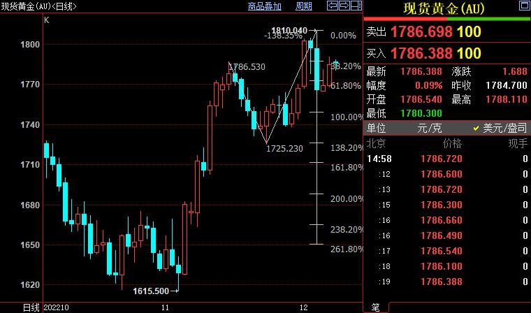 现货黄金上浮0.03%至1786.51美元/盎司;COMEX期金主力合约上浮0.03%至1798.6美元/盎司;