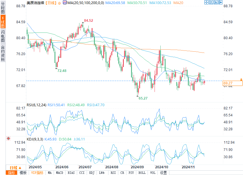 2025年供应充足将影响市场情绪国际能源署(IEA)预测,到2025年,全球石油供应过剩将超过100万桶/日,相当于全球产量的1%以上。这一前景强化了看跌情绪,分析师预测平均油价可能会跌破2024年的水平。市场参与者也在关注欧佩克+会议,该会议现已重新安排到12月5日,预计该组织将延长减产。虽然这些减产可能会提供暂时的支撑,但长期供应过剩的前景预计将限制价格上涨。