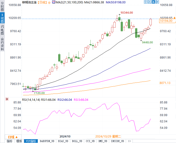 数据显示,10月棕榈油库存下降6.32%,至188万吨,原棕榈油产量则减少1.35%,至180万吨。这些数据强化了市场对供应紧张的担忧。预计本周六,货运调查机构将发布马来西亚11月1日至30日的出口估算,可能为市场提供新的指引。
