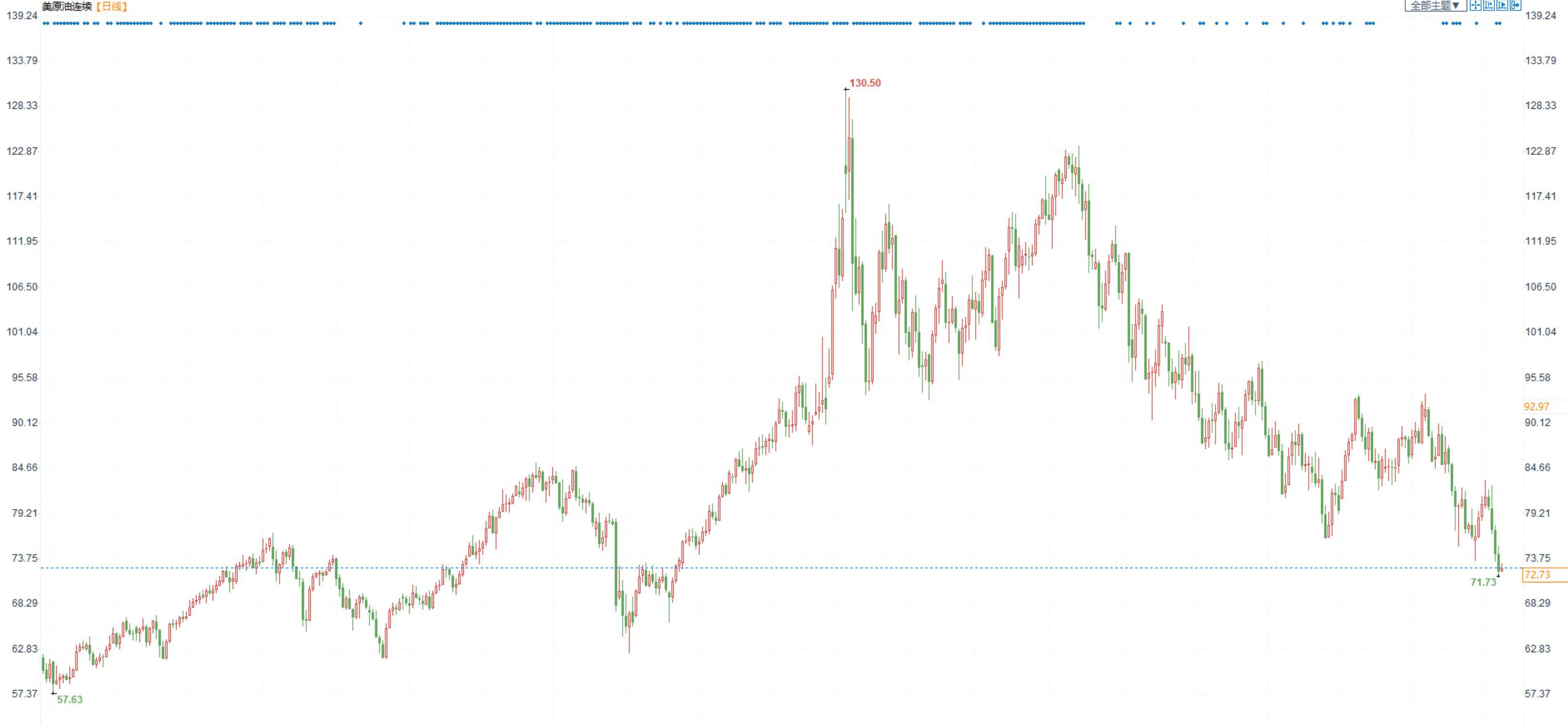 期货市场,布油在77美元附近震荡整理,下破80美元整数关口,国内SC2301合约跌小幅收跌,收盘价511.7。