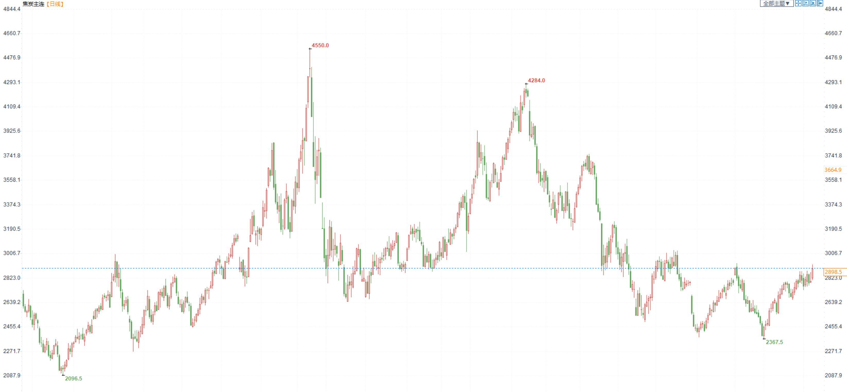价格:今日01合约涨2.49%,收于2898.5,港口仓单成本2903元/吨。产地焦企全面提涨第三轮100-110元/吨,焦炭累积涨幅300-330元/吨,目前主流钢厂暂无回应,