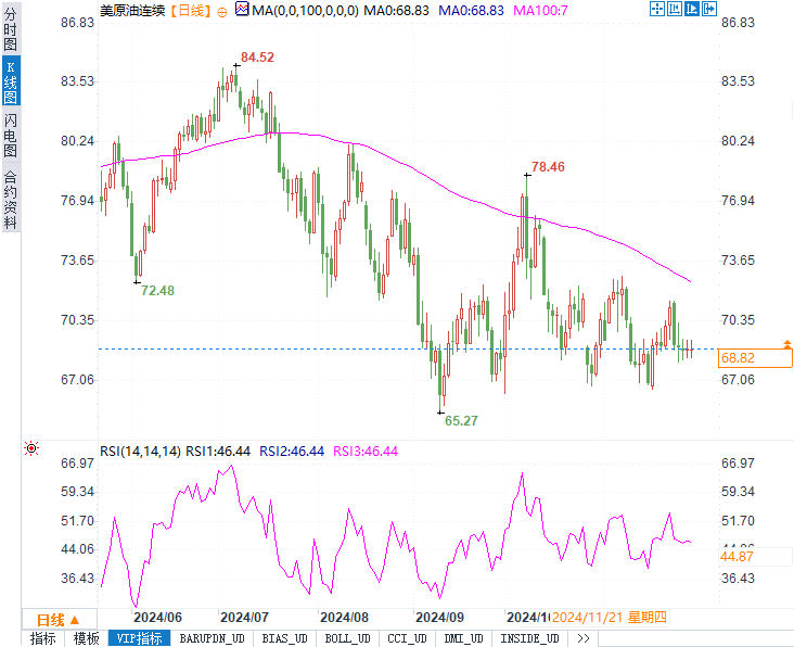 从短期来看,WTI原油价格将继续受到地缘政治风险和OPEC+会议结果的主导影响。中东局势的紧张可能在一定程度上支撑油价,尤其是在需求端不确定的情况下,供应风险的加剧将对油价构成支撑。此外,市场对美联储货币政策的预期变化也可能对油价走势产生影响。如果美国经济保持强劲,且美联储未能如市场预期般采取降息措施,原油需求可能会进一步减弱,价格面临下行压力。