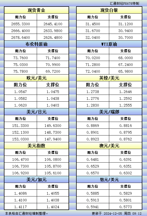 标题:12月5日亚市更新的支撑阻力:金银原油+美元指数等八大货币对