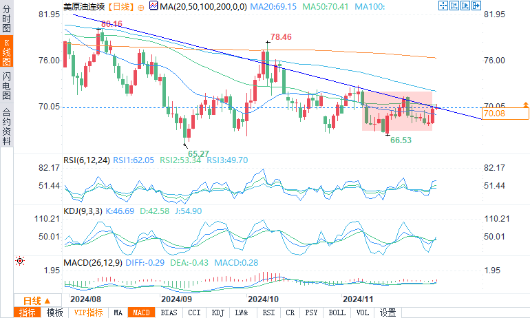 美国库存数据反映季节性趋势美国石油协会(API)的初步数据显示,美国原油库存增加了120万桶,而汽油库存激增460万桶,尽管感恩节假期是传统上燃料消耗较高的时期。美国能源情报署(EIA)将于今天晚些时候发布官方库存数据,分析师预计原油库存将减少70万桶,但汽油库存将进一步增加。