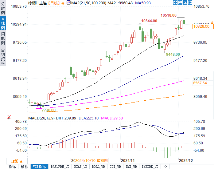 综上所述,棕榈油市场今日的下跌反映了多重因素的影响,包括竞争性植物油价格的变动、汇率波动以及出口预期的调整。对于市场参与者而言,这些新变化需要密切关注,以便更好地把握市场脉搏。在当前复杂的市场环境下,交易者需要综合考量基本面和技术面因素,谨慎制定交易策略。