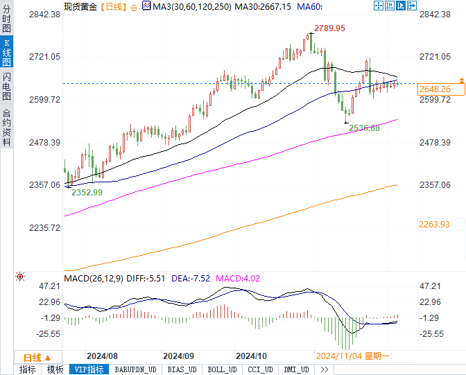 贵金属现货黄金微跌0.04%,报2648.73美元/盎司,投资者关注周五非农数据对金价的指引。