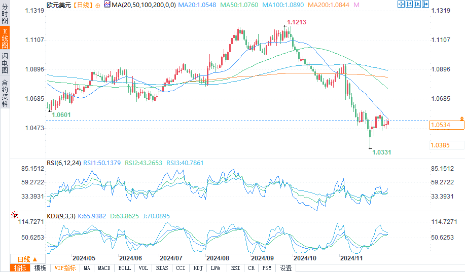 在以高额关税威胁加拿大、墨西哥等国之后,美国当选总统特朗普警告说,如果金砖国家放弃美元并创造自己的货币,他将对它们征收100%的关税。特朗普的关税承诺和大规模削减公司税的承诺被视为容易引起通胀的政策,再加上美国好于预期的经济数据,投资者得以继续猜测美联储将缓慢降息。尽管包括一贯鹰派的尼尔·卡什卡利(Neel Kashkari)在内的几位政策制定者倾向于在12月降息。