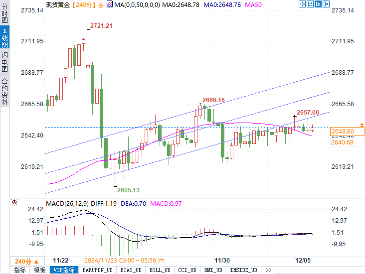 现货黄金交投于每盎司2648.00美元,日内微跌0.06%。随着投资者将目光聚焦于即将公布的美国非农就业报告及未来的通胀数据,市场情绪偏向谨慎。尽管