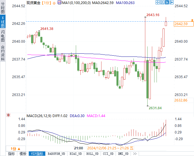 现货黄金短线走高12美元,最高触及2643.16美元/盎司。美股期货也出现小幅反弹。美国短期利率期货上涨,因为交易员押注美联储降息的可能性加大。