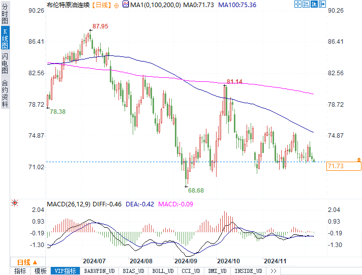 布伦特原油的价格区间主要集中在70-75美元/桶之间。这种震荡走势反映出市场在面对复杂基本面时的犹豫情绪。一方面,需求前景承压;另一方面,中东地区的地缘政治风险加剧了供应链的不确定性,为油价提供了一定支撑。