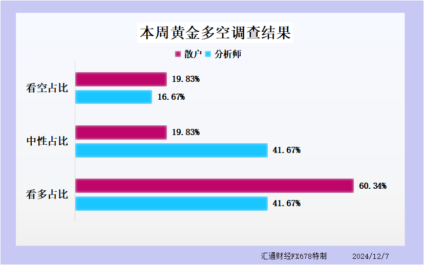 汇通财经APP讯——本周黄金市场经历了波动,价格在2645美元每盎司附近反复震荡,显示出市场在2025年前处于观望状态。在对黄金走势的预期调查中,分析师和散户交易者的观点分歧,看多和看空情绪交织,市场焦点集中在即将到来的通胀数据和全球央行的利率决策上。