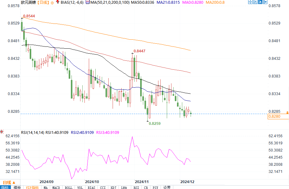欧元兑英镑汇价目前徘徊在2024年的低点附近,受到多重因素施压。市场预期英国央行未来降息次数可能少于欧洲央行,叠加法国和德国的政治不确定性,这些因素有助于维持英镑的相对优势。