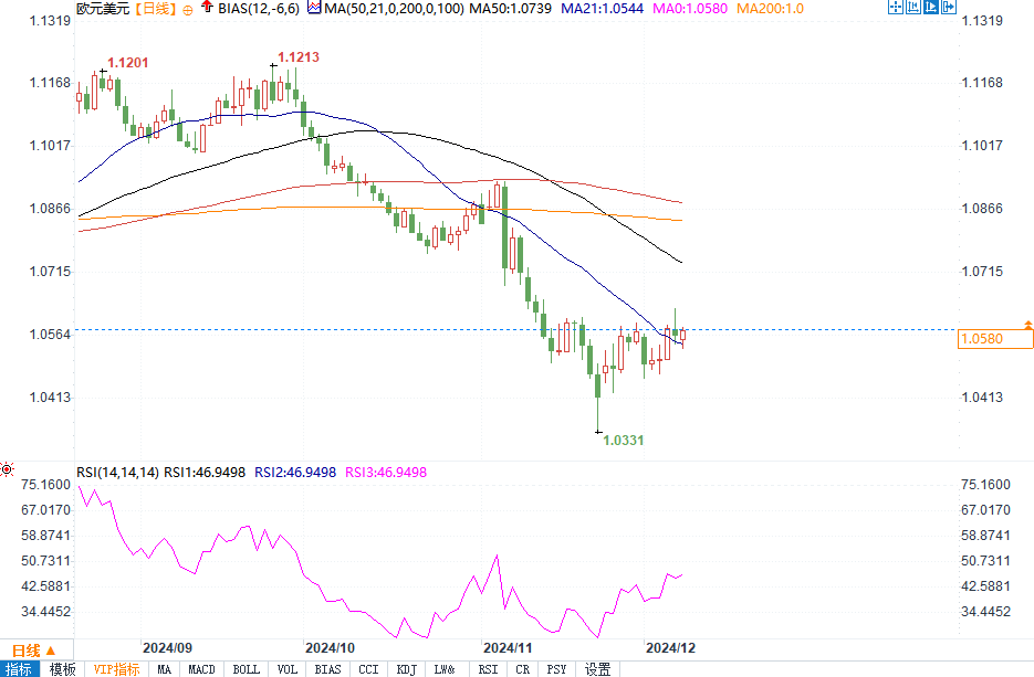 欧元兑美元目前徘徊在1.05附近,略高于11月底触及的两年低点。市场普遍预期,欧洲央行将在本周四降息25个基点至3%,这是本轮宽松周期的第四次降息。