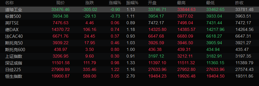 标普500指数下跌3.4%,道指下跌2.8%,纳斯达克指数下跌4%。