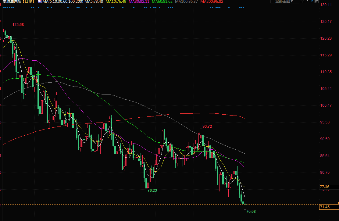 商品收盘情况:美国原油期货收低0.44美元,结算价报每桶71.02美元,创年内新低。