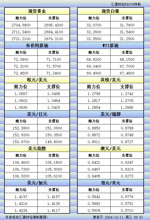 标题:12月11日亚市更新的支撑阻力:金银原油+美元指数等八大货币对