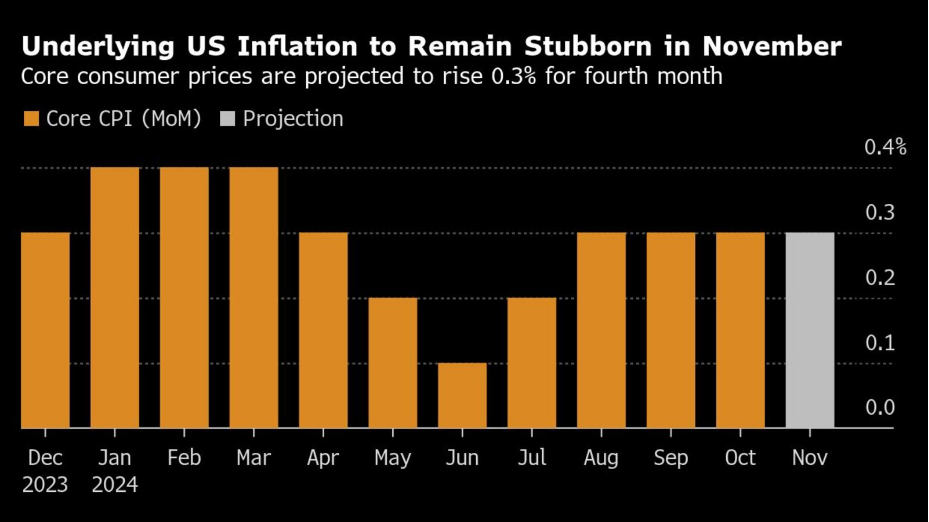 而对于通胀数据,根据彭博社调查的中值估计,11 月份不包括食品和能源的所谓核心消费者价格指数预计将环比上涨 0.3%。美国劳工统计局周三发布的报告预计也将显示总体指标上涨了类似的幅度。许多经济学家预计,由于二手车和服装成本上涨,核心商品价格在全年大部分时间下跌后,11 月份将连续第三个月上涨。住房和汽车保险也被视为导致通胀升高。