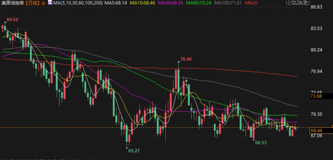 美原油交投于68.46美元/桶附近,因亚洲大国财政政策,需求预期乐观,欧洲今年冬天可能出现供应紧张支撑油价。