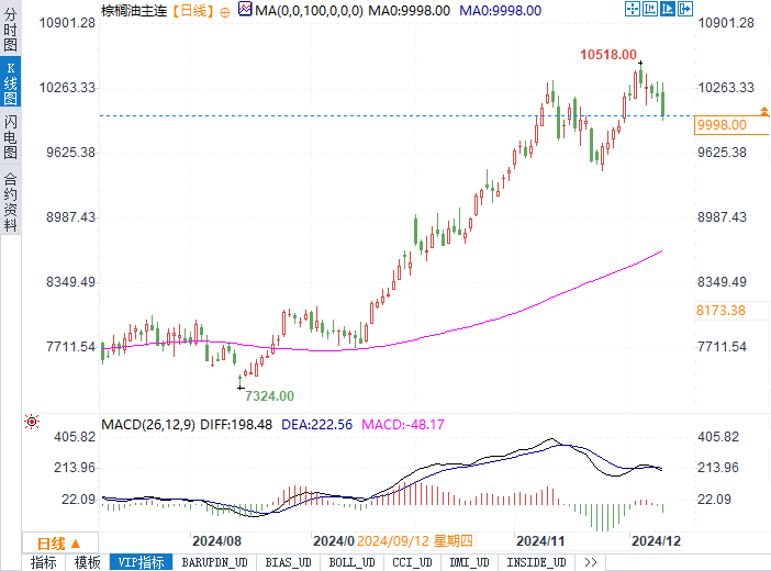 从中期角度观察,2025年第一季度的产量恢复速度将成为关键变量。历史数据表明,季节性产量通常在年初呈现恢复态势,届时供需错配可能有所缓解。此外,近期国际市场对于其他油脂油料价格的波动性也需密切关注,尤其是大豆油与菜籽油的价格变化,这将影响棕榈油在全球植物油市场中的相对竞争力。