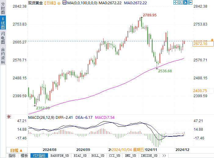 现货黄金报2669.86美元/盎司,日内上涨0.37%。市场对美联储下周降息25个基点的预期达到86%,为贵金属提供支撑。与此同时,投资者将密切关注美国即将公布的通胀数据,该数据将直接影响市场对美联储政策路径的预期。