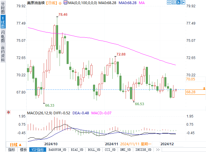 的下行支撑则关注在67.50美元/桶附近。一旦中国政策刺激效果显现或美联储宽松政策落实,油价可能迎来进一步上行动力。然而,投资者需密切关注未来一周的美国通胀数据及中东局势的潜在变化。