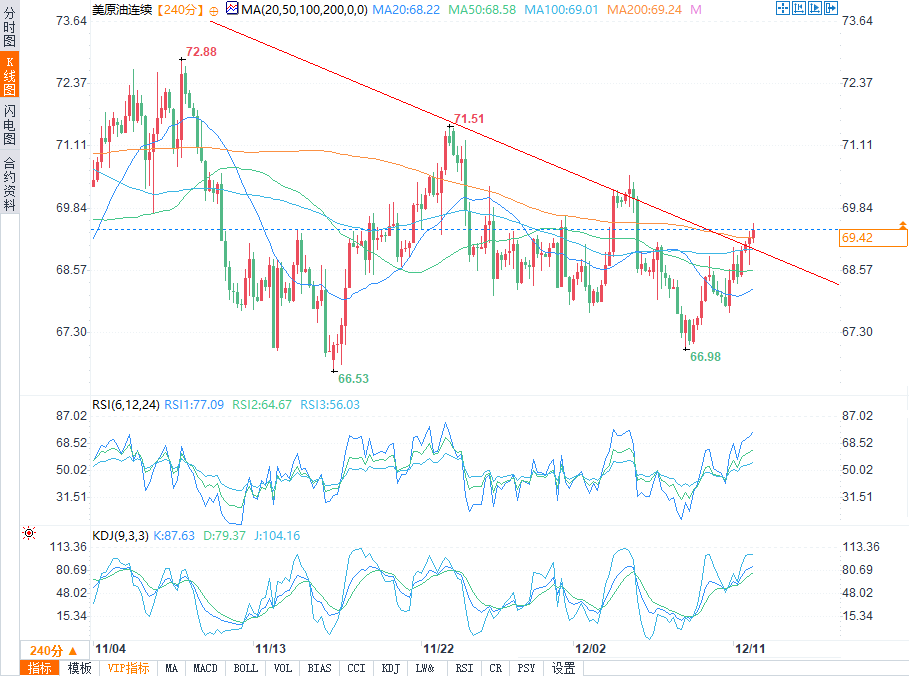 原油价格显示了额外的上涨交易,超越了技术图上的看跌趋势线。并且强化了未来几个交易日继续看涨趋势的预期,开辟了向下一个主要目标70.58美元迈进的道路。