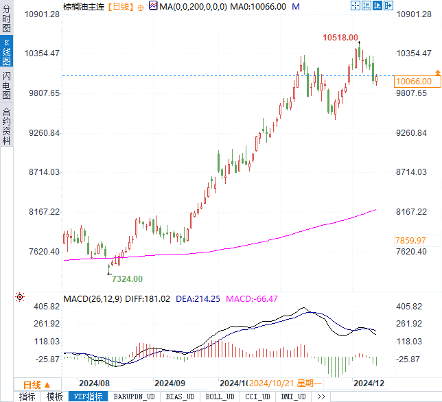 在外盘方面,大连商品交易所的棕榈油主力合约下跌1.12%,但豆油表现强劲,涨幅分别为1.72%(大连)和0.68%(芝加哥期货交易所)。这种对冲市场的联动关系加剧了棕榈油期货的波动性,显示出不同植物油之间的替代效应。值得注意的是,根据两家独立货运调查机构的数据,12月1日至10日的棕榈油出口环比增长,幅度分别为3.9%(Intertek)和1.1%(AmSpec),表明需求虽有改善,但其支撑力度尚不足以逆转市场短期调整的趋势。