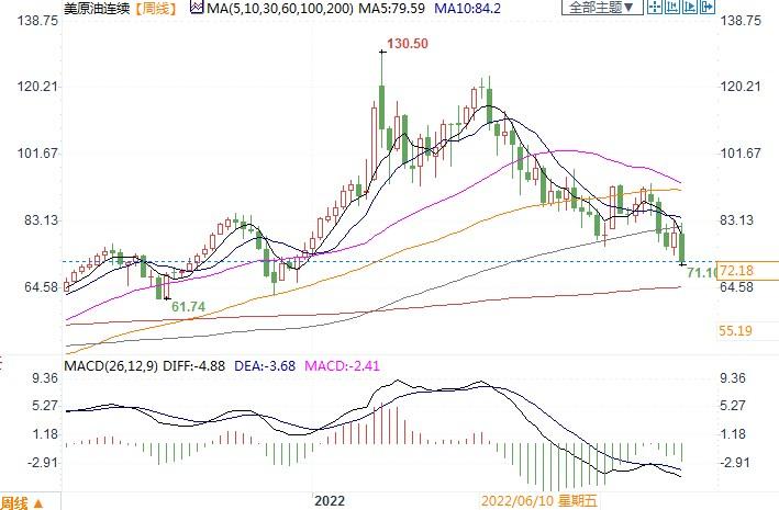布伦特原油期货下跌10.49%至76.43美元/桶。两市盘中均创去年12月份以来的新低,分别至71.10美元/桶和75.74美元/桶。