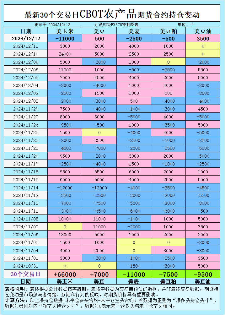 汇通财经APP讯——周五(12月13日),CBOT谷物期货市场呈现分化走势,主要品种价格波动受到出口数据、美元汇率变化及国际交易需求的多重影响。美国农业部(USDA)最新出口销售数据低于预期,而大宗商品基金近期的持仓调整也反映了市场情绪的转变。