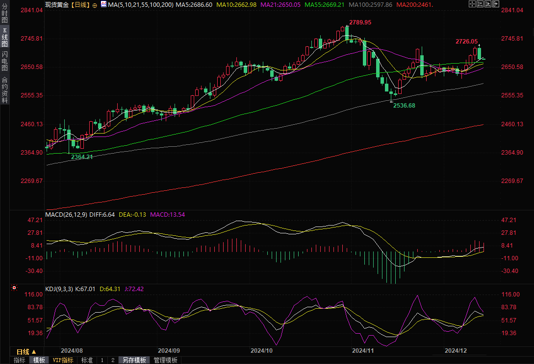 本交易日经济数据相对较少,主要留意美国11月进出口物价指数变动。另外,投资者需要继续关注地缘局势的相关消息,留意特朗普相关动态消息。从技术面来看,金价未能顶破11月25日高点2721附近阻力,并两次在该位置受阻后回落,短线下行风险有所增加,留意55日均线2669.20和21日均线2650附近支撑。上方关注2700整数关口阻力,若能回升至该位置上方,则削弱短线下行风险。