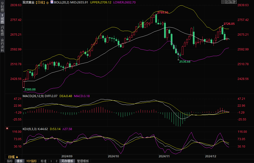 现货黄金窄幅震荡,目前交投于2652.01美元/盎司附近。金价周一探底回升,盘初曾跌创一周新低至2643.41美元/盎司,收报2652.50美元/盎司附近,受持续的地缘政治担忧和美元走软的支撑,不过,市场在等待美联储的政策会议,观望情绪较浓,整体交投比较谨慎;预计美联储将第三次降息,并提供有关2025年前景的线索。