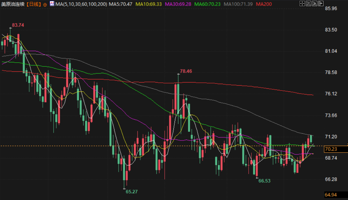 美国原油期货 结算价报每桶70.71美元,下跌0.8%,此前也创下11月7日以来的最高收盘水平。