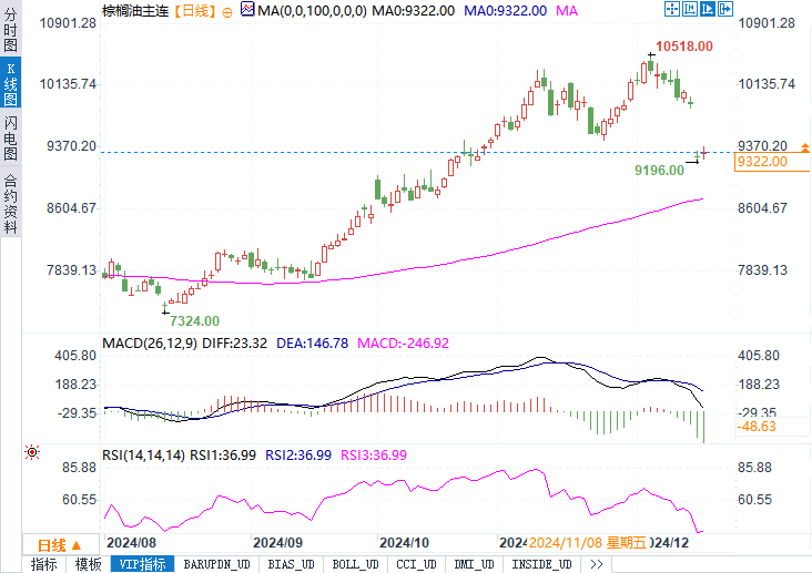 综上所述,尽管林吉特的走软为棕榈油价格提供了一定支撑,但竞争对手油脂价格的下跌、产量下降以及出口减少等因素共同作用,使得棕榈油市场面临下行压力。投资者需密切关注联邦储备会议的结果以及原油价格走势,这些因素将对棕榈油市场产生重要影响。