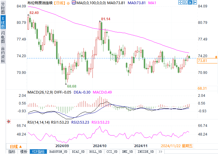 根据上周数据显示,美国初请失业金人数上升至24.2万,高于市场预期,表明全球最大石油消费国的经济增长可能放缓。此外,投资者担忧2025年经济政策变化可能影响石油需求,尤其是新一届美国政府政策可能带来的通胀风险。