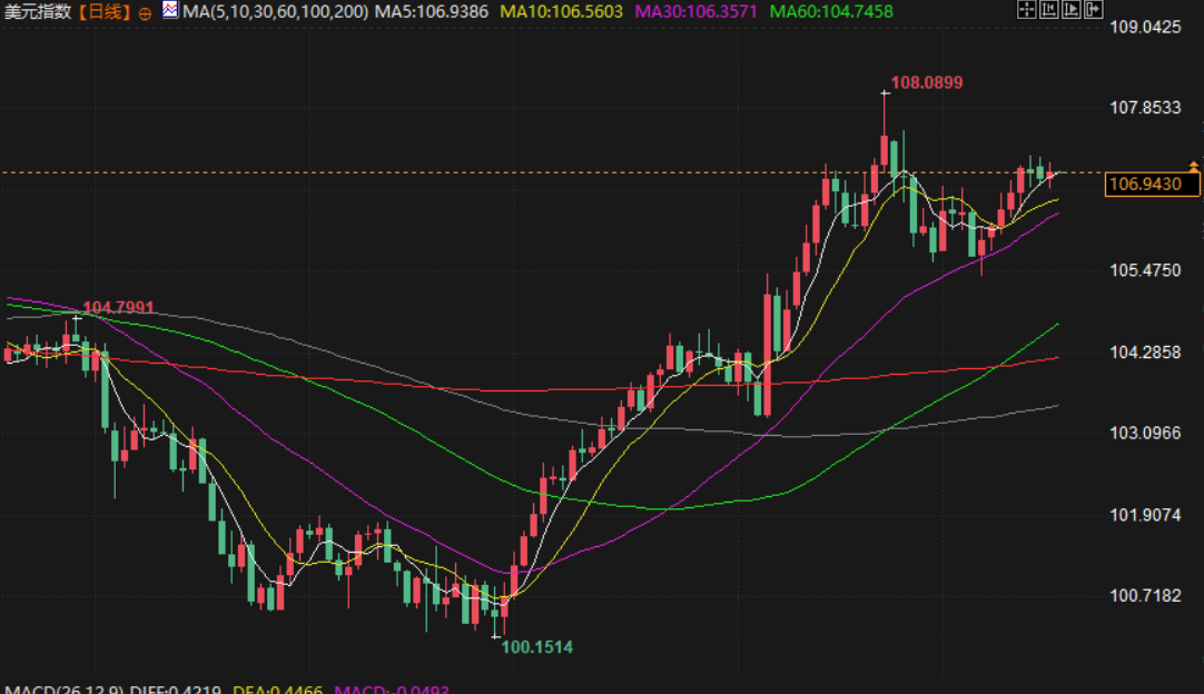 美元兑主要货币周二上涨,盘中最高上探至107.08点,此前美国公布的零售销售数据好于预期,显示出基本经济势头,同时市场为美联储和其他央行的利率举措做好准备。美国商务部周二公布的数据显示,受机动车和网购增长的支撑,11月份美国零售销售超预期增长了0.7%。