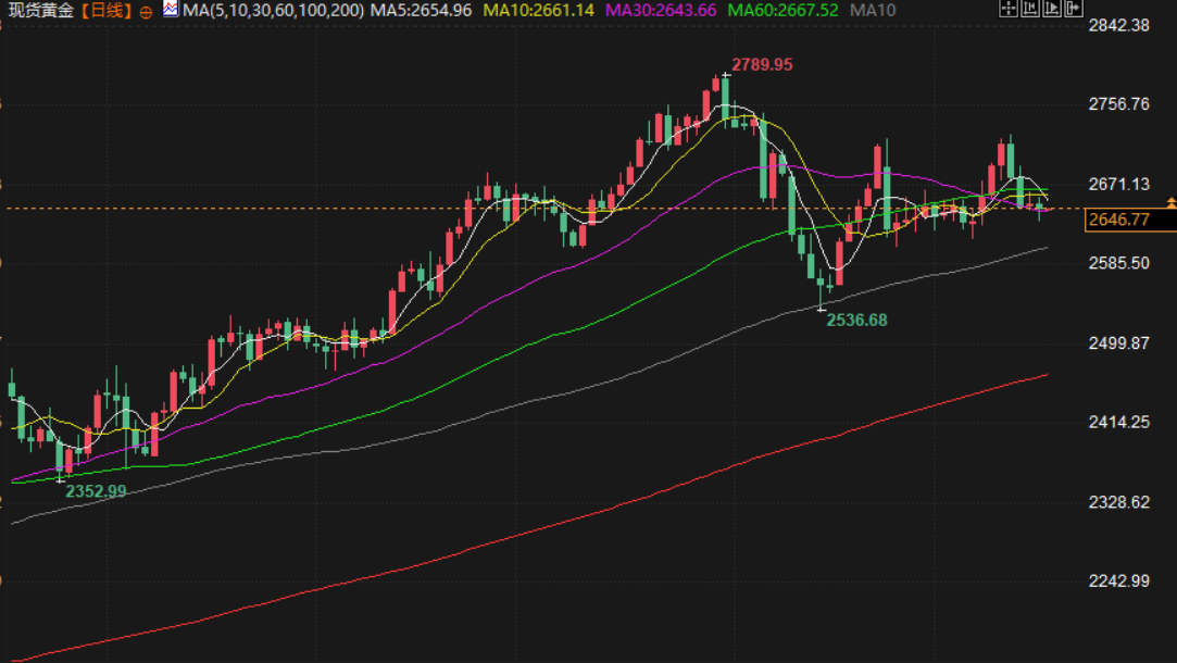 现货黄金交投于2646.35附近,投资者谨慎关注美联储今年最后一次政策会议,对2025年将逐步降息的预期不断增强,限制金价涨幅,