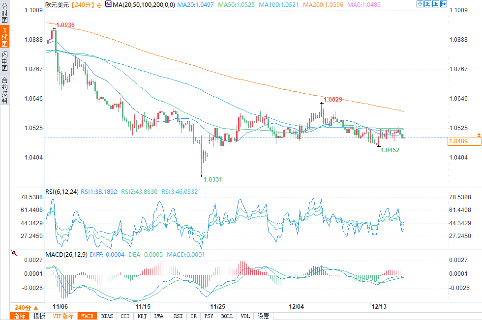 汇通财经APP讯——周二(12月17日)欧盘时段,美元/加元创下四年新高,有望进一步上涨。欧元/美元在1.0510附近交易,市场参与者在美联储即将做出利率决定之前采取谨慎态度。英镑/美元在突破下行趋势线后未能延续反弹,并一路抛售回到主要的上行趋势线。