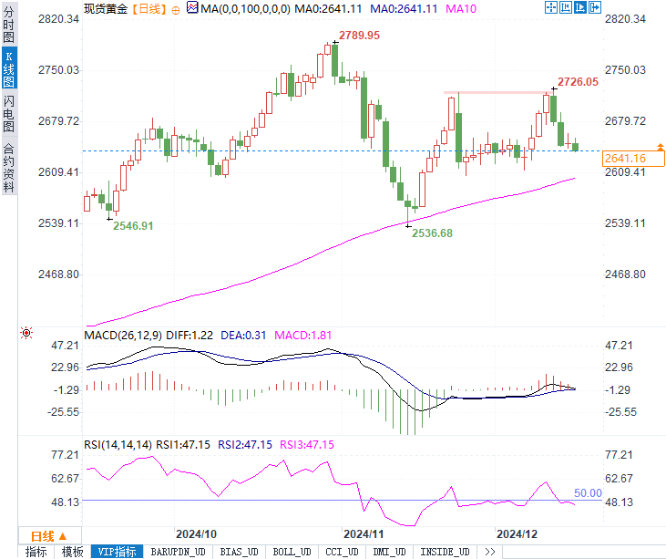 现货黄金价格下跌0.36%,交投于2642.84美元/盎司。美元的强势对黄金的吸引力构成压力,使得金价无法突破重要的技术阻力位。尽管市场普遍预期美联储将在本次会议上降息25个基点,但投资者对未来货币政策路径的不确定性仍使金价维持在低位。