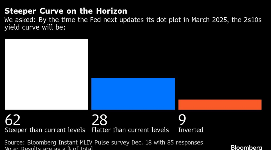 受访者表示,美联储最终可能会变得更加强硬:36%的受访者表示,美联储低估了其长期中性利率,即既不促进也不抑制经济活动的利率。即使官员们将增长率预测从 9 月份的 2.9% 左右提高到 3%,情况也是如此。四分之一的人表示美联储对中性的估计过高,39% 的人表示这一估计是准确的。62% 的调查受访者表示,3 月份美国国债收益率曲线可能会更加陡峭。