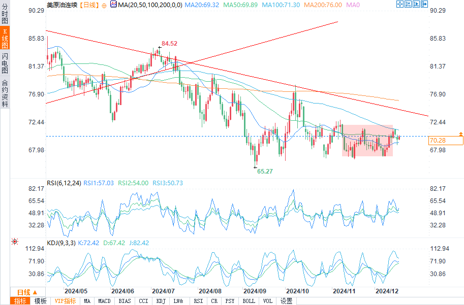 汇通财经APP讯——周二(12月18日)欧盘时段,WTI原油期货价格小幅走高,交易价格高于50日移动均线69.89美元。市场参与者正谨慎地尝试建立支撑位。如果未能维持50日支撑位,表明可能出现看跌逆转。