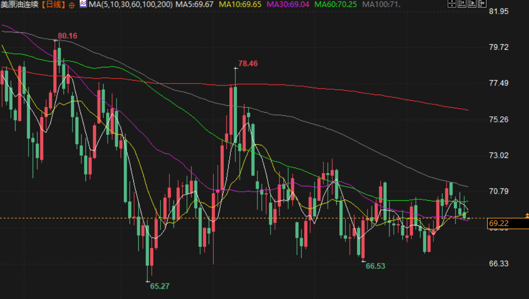 美原油交投于69.27美元/桶,美联储降息预期加剧了对经济活动疲软可能削弱明年石油需求的担忧,油价涨幅受限。