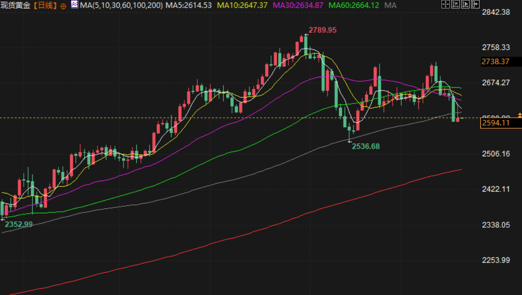 现货黄金报每盎司2,592.39美元,上涨0.2%;美国黄金期货下跌1.7%,报2,607.50美元。早些时候的数据显示,美国第三季度经济增长速度超过预期,而申请失业救济人数的降幅也超过预期。