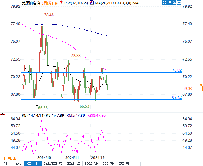WTI原油价格试图突破每桶70美元水平但未果,目前存在下行挤压风险。若卖方减少对高油价的对冲,可能引发油市剧烈回调。由于“四巫日”(美国每年3月、6月、9月和12月的第三个周五,股指期货、股指期权、股票期权和单一股票期货同时到期)即将到来,市场波动可能导致油价迅速下探至每桶67美元寻找支撑;