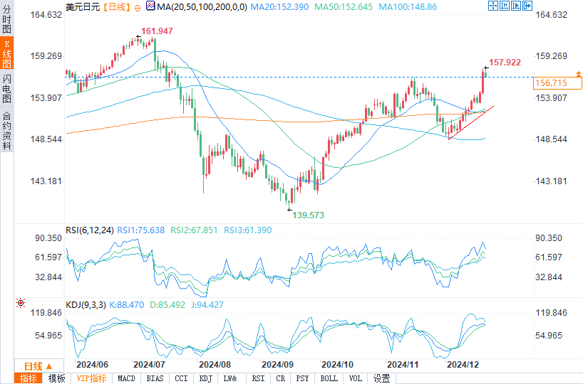 北京时间18:51,英镑/美元报1.2504/05,涨幅0.03%。欧元/美元报1.0388/89,涨幅0.26%。美元/日元报156.732/733,跌幅0.43%。