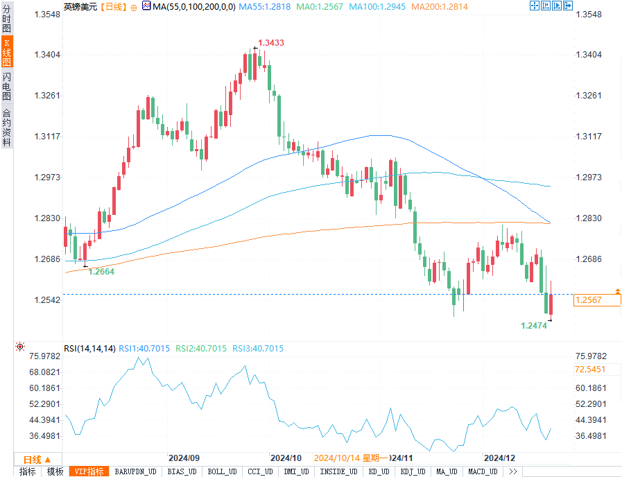本周走势回顾美元在本周初触及两年高位后回落,但整体仍保持周线上涨。美联储降息25个基点,并表示2025年降息幅度将减少,这在一定程度上支撑了美元。