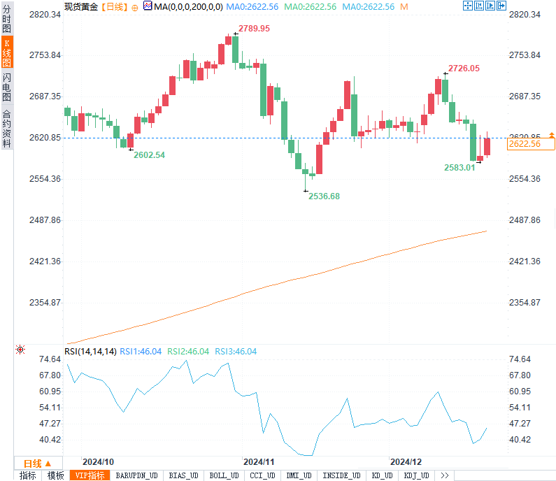 尽管金价本周面临一定的下行压力,但在技术层面,黄金依然在2620美元附近找到了较强的支撑。根据市场分析,这一支撑位在近几个交易日表现出较强的稳定性,即便在美联储政策预期较为鹰派的背景下,金价依然能够维持在此水平之上。这表明市场对于黄金的长期避险需求依然存在,尤其是在不确定的宏观经济和政治环境下。
