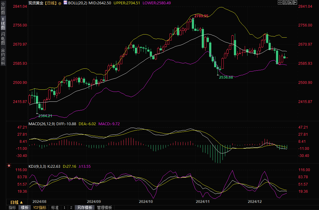 现货黄金窄幅震荡,目前交投于2615.35美元/盎司附近。金价在周一低迷的假日季交投中走低,美国核心耐用品订单强劲反弹,帮助美元走强,美国10年期国债收益率刷新逾半年高点,令金价承压明显。