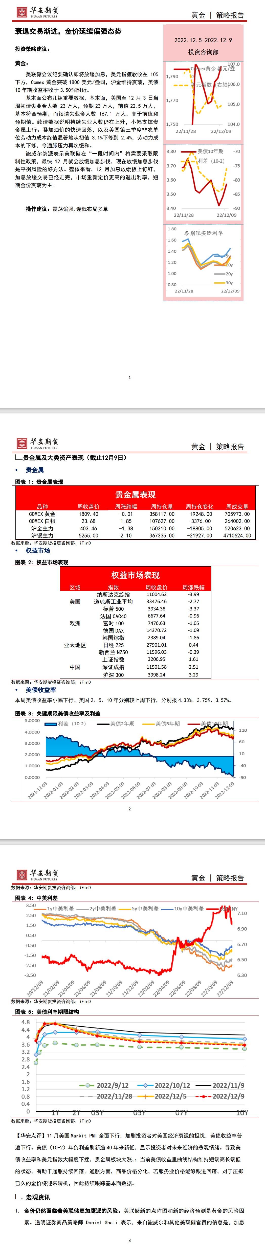 标题:【华安期货】贵金属12月11日周报:衰退交易渐进,金价延续偏强态势